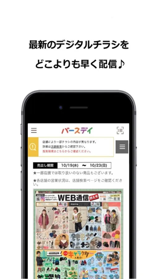 バースデイでの公式アプリでは最新のチラシやバースデイオリジナルブランドの情報を閲覧できます。