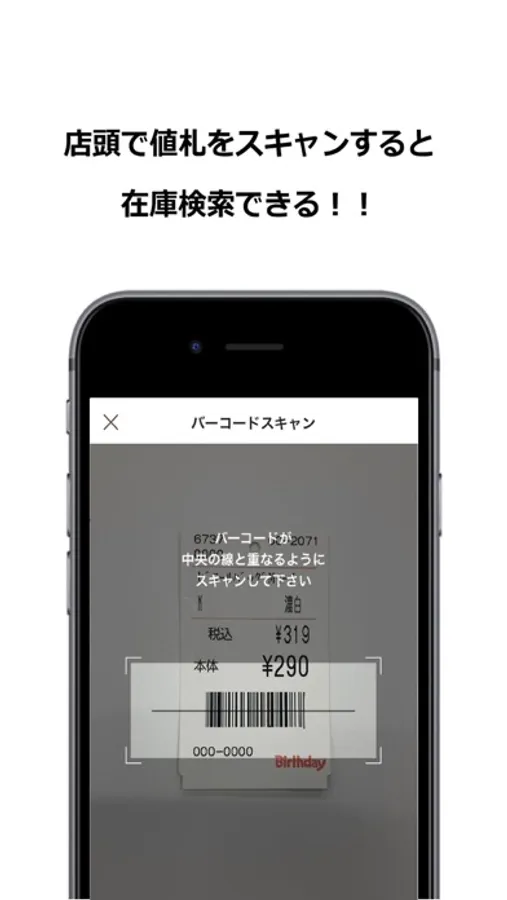 店舗で気になった商品の値札バーコードをスキャニングすると、在庫状況を確認する事が可能です。