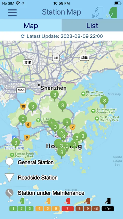 Real time broadcasting of the Air Quality Health Index (AQHI) reported by the 15 general and 3 roadside air monitoring stations operated by the Environmental Protection Department of the Government of Hong Kong Special Administrative Region. AQHI is reported on a scale of 1 to 10 and 10+ and grouped into five health risk categories, namely low, moderate, high, very high and serious.