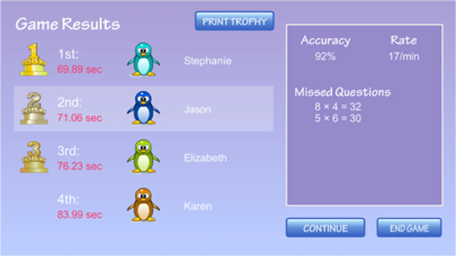 Penguin Jump Multiplication is a multiplayer racing game that allows students from anywhere in the world to race one another while practicing their multiplication facts. Race to the finish line by clicking on the icebergs that have the correct answer to each multiplication problem.