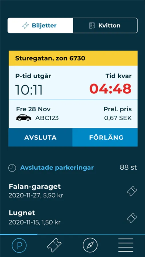 Betala din parkering direkt i appen med ett betalkort. Förläng din parkeringstid utan att behöva gå tillbaka till bilen. Avsluta din parkeringstid automatiskt eller manuellt. Parkeringar med kameraparkering behöver du bara registrera din bil en gång så sköter biljetterna sig automatiskt. Du betalar bara för tiden du parkerar, inga extra avgifter dras.