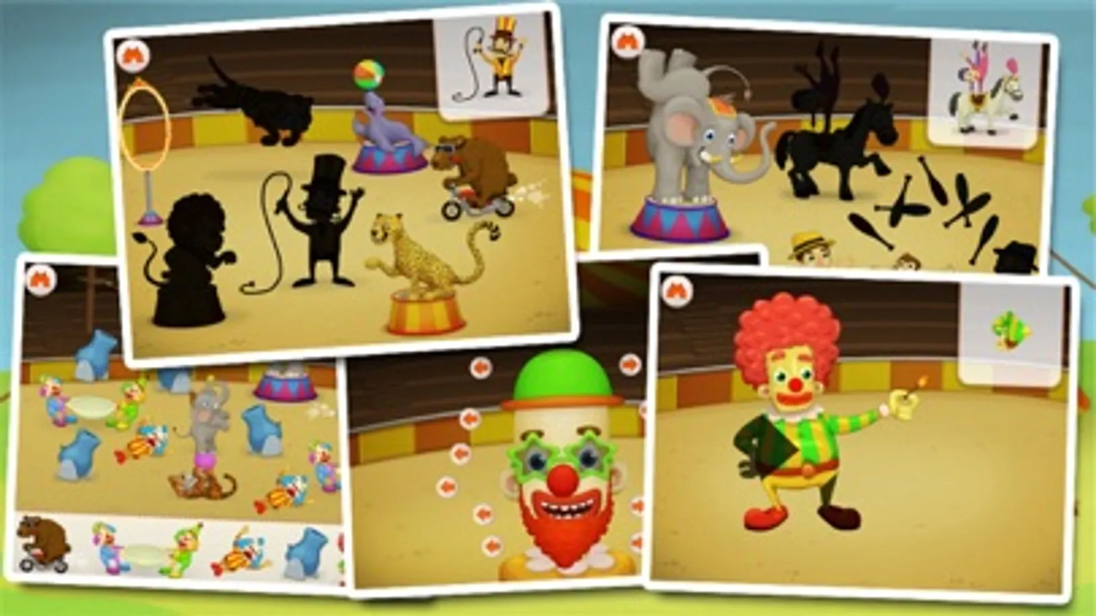 This circus game includes four different game types ( puzzle, jigsaw puzzle,stickers and dress the clown). Each game is design to make you kids happy :)