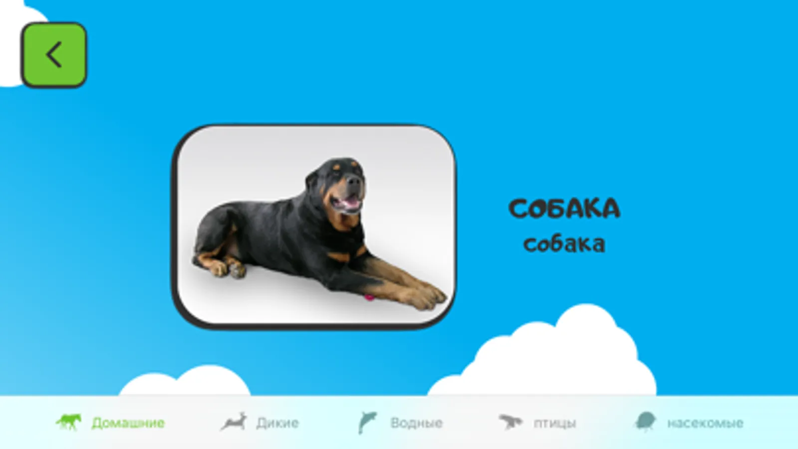 - Animals: Domestic Animals, Wild Animals, Aquatic Animals, Birds, Insects - discover the world through beatiful images of animals and their specific sounds;