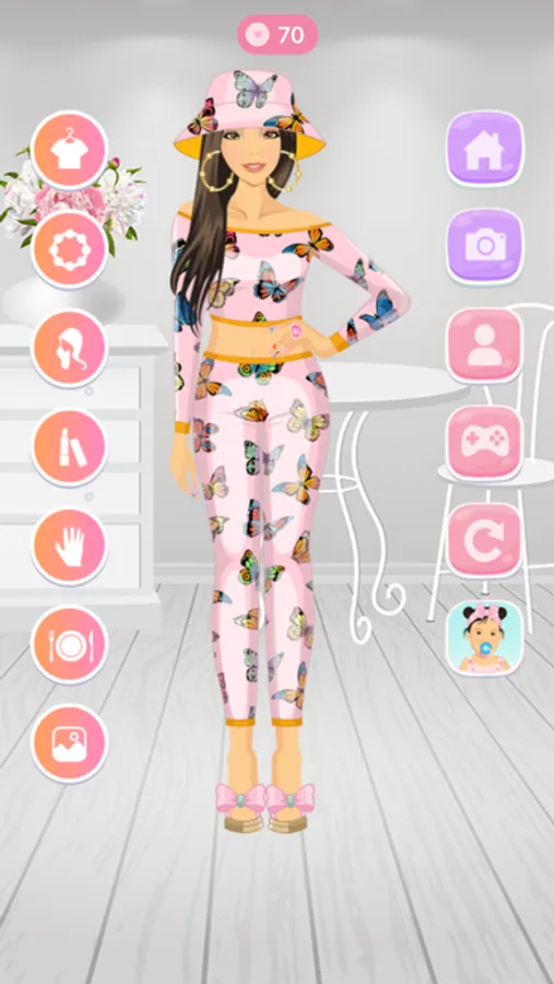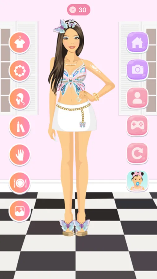 • Wardrobe: tons of clothes, shoes & accessories to choose from.