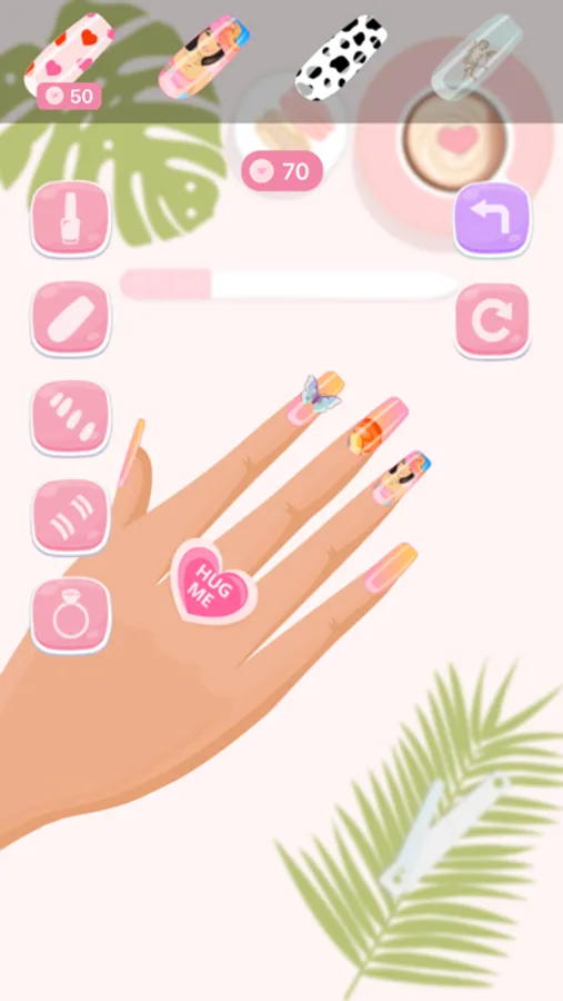 • Nail Salon: various nail art designs, from immaculate and clear glass-like nails to animal prints, from minimalist metallic hues to fun eye-catching colorful graphics.