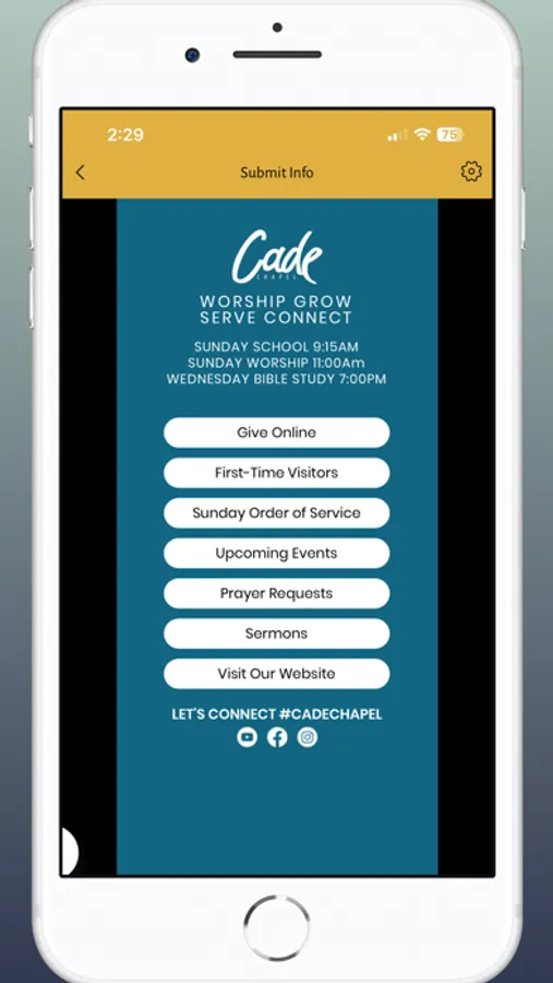 Welcome to Cade Chapel - the church where lives are changed! Through powerful ministries and purposeful missions, we help to put each member on an intentional path of faith development and spiritual maturity. At Cade Chapel, you can anticipate a vibrant worship experience that celebrates the diversity of an inter-generational congregation. Our richness in tradition and yet freedom in the Spirit uniquely positions us to minister to a vast cross - section of Kingdom citizens. It is our purpose and desire to foster in your life a personal and passionate commitment to Christ and His church that is lived out as we corporately WORSHIP, GROW, CONNECT, and SERVE. Welcome to church were lives are changed! Welcome to cade chapel.