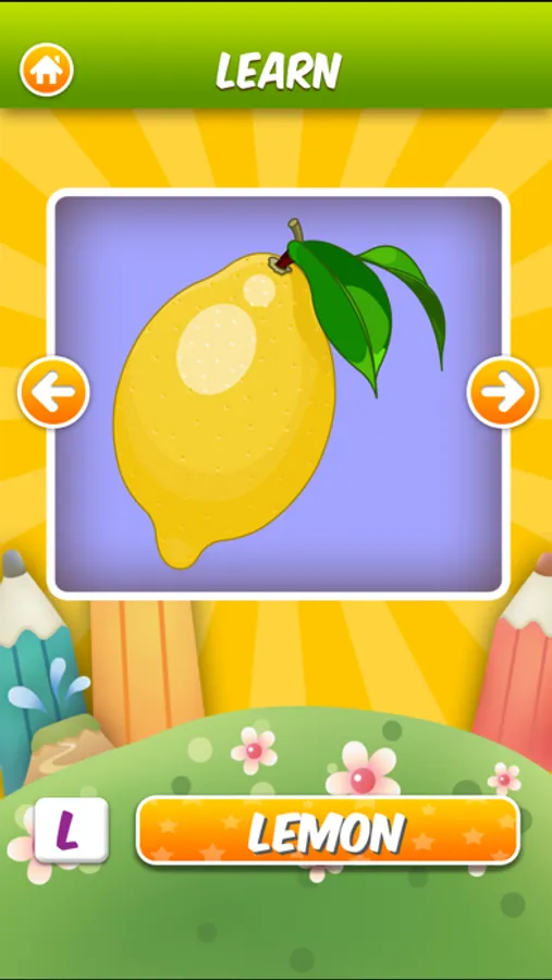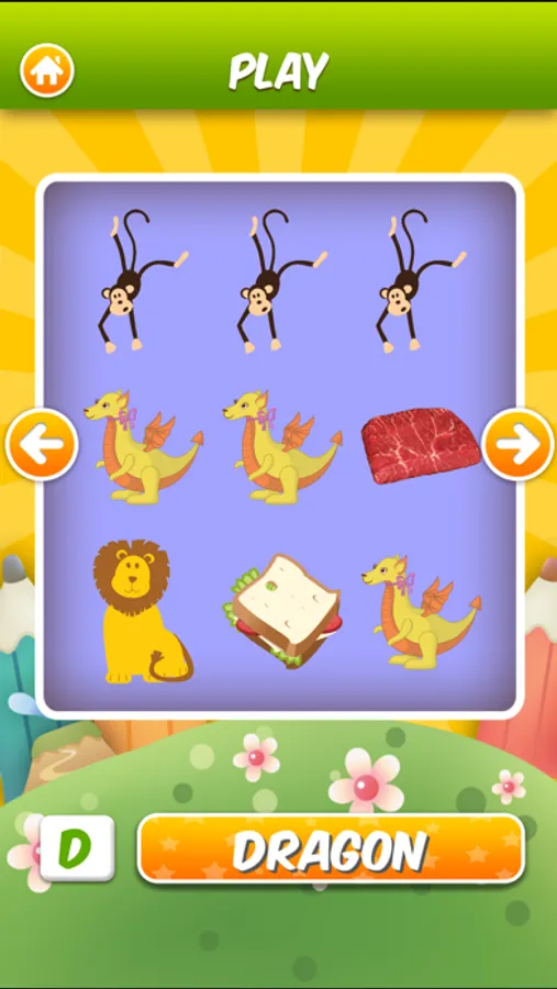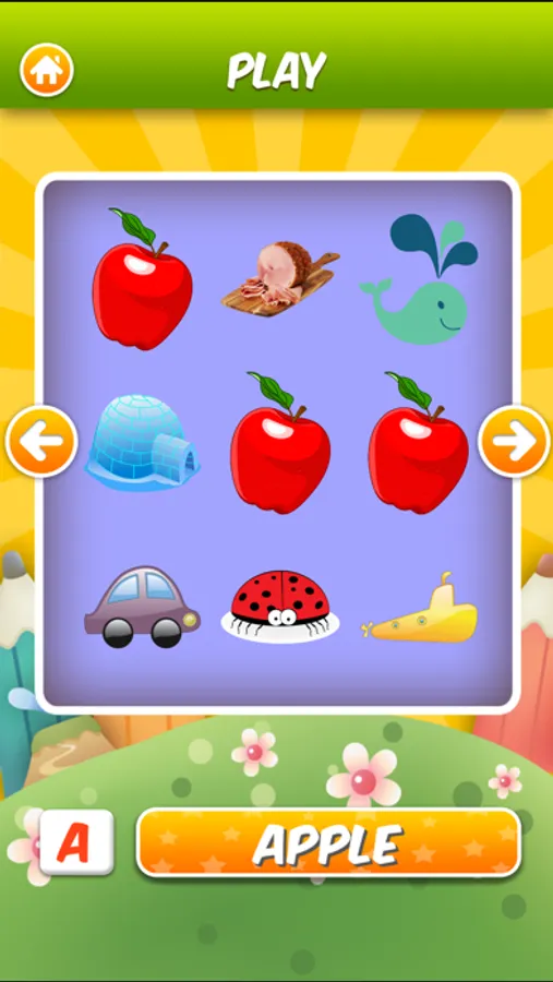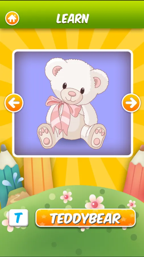 2. Play mode: A simple quiz style game to identify the objects the kids have learnt in the learn mode.