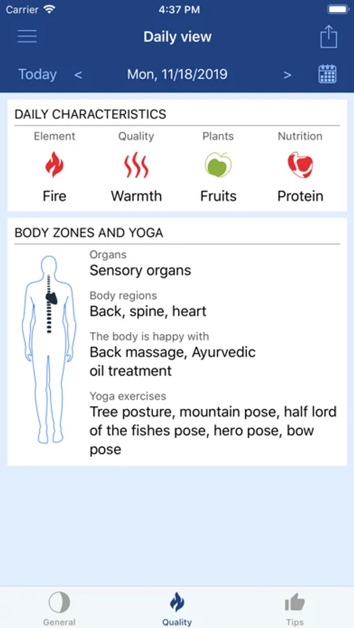 • Body regions (corresponding to the zodiac) with alternative care tips and yoga exercises