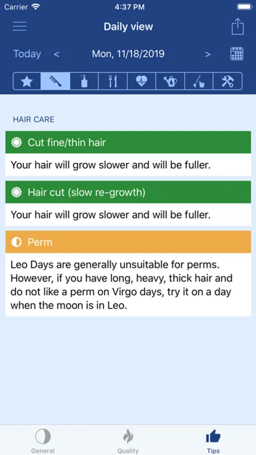 • Word of the daily quality for all 48 combinations of moon phase and zodiac