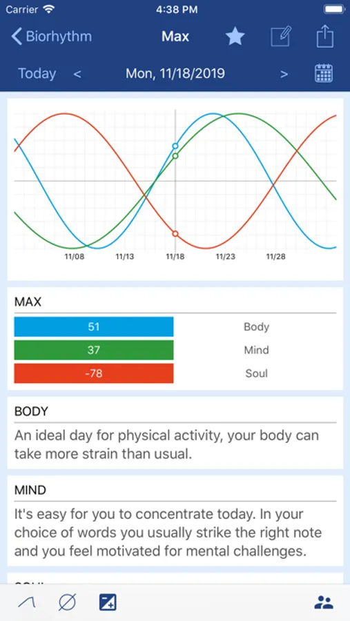 • Biorhythm individually adjustable for any date