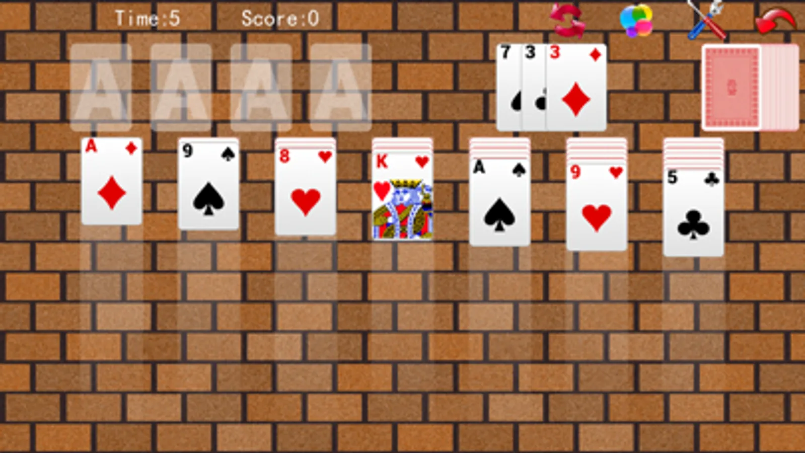 Four Home stacks are positioned at the upper-right corner. This is where you build the piles needed to win.
