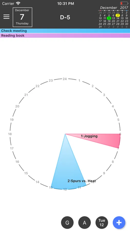 - Represented in the circle which it is easy to see at a glance the schedule of the day.