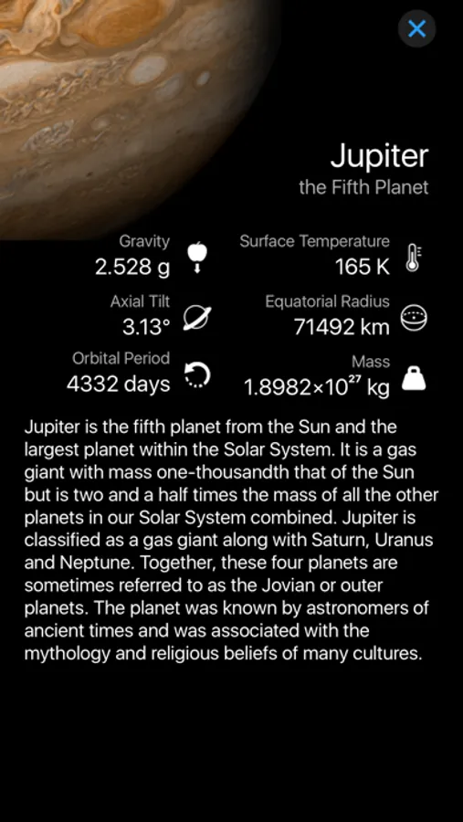 * Detailed information on hundreds of celestial objects from stars to planets to solar system objects.