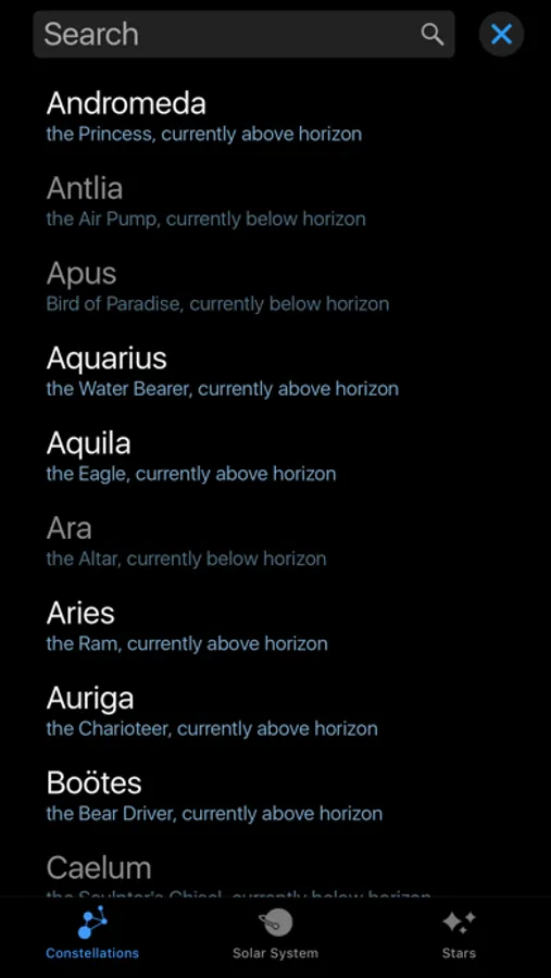 * Supports both motion and touch navigation. Point your device at the sky and the app will track what you see.