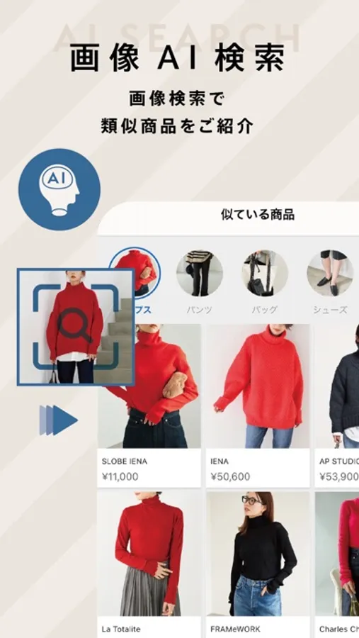 商品カテゴリーやブランド別でオンラインストア内の商品検索が行えるほか、現在地や都道府県などから店舗の住所や電話番号、営業時間などをご確認いただけます。また、似ている商品の検索も可能です。