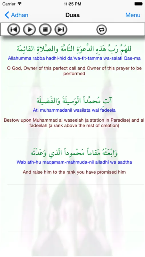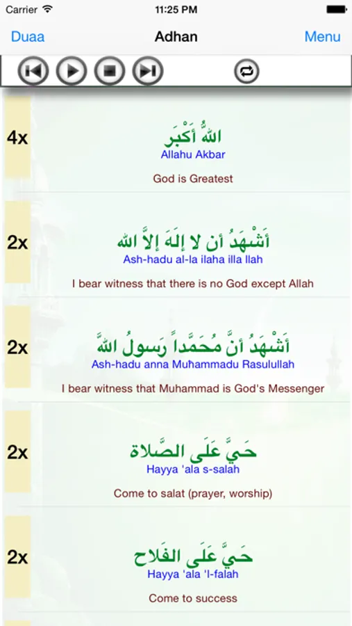 This application is aimed to learn and listen to the Adhan recited by different muezzins. The adhan is divided into parts that you can listen several times and that come with the translation and the transcription.