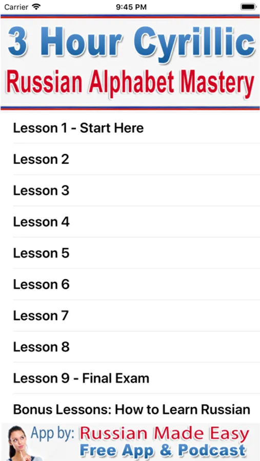 Russian Alphabet Mastery is normally available as part of the paid RussianAccelerator.com online program, but is now available free to app users.