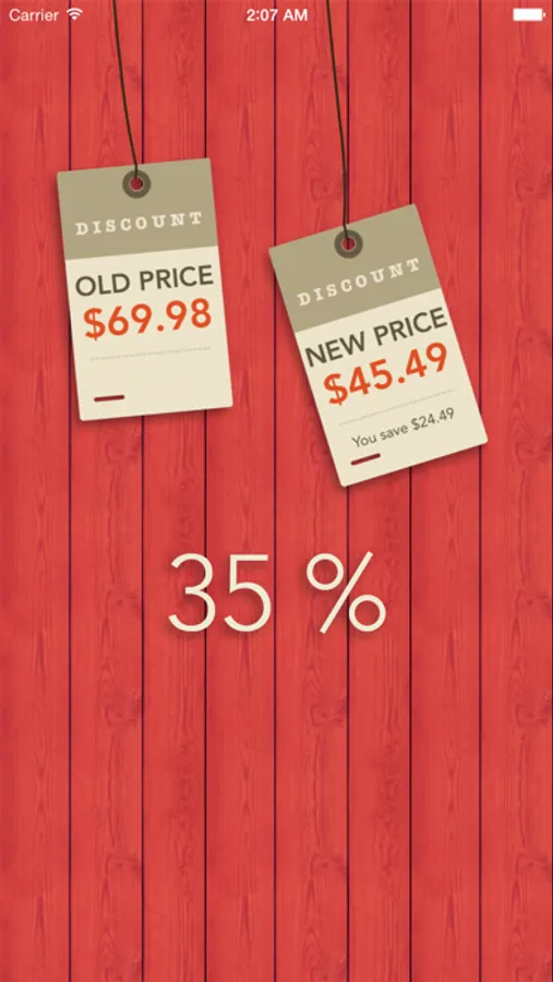Did you ever find yourself in a store wondering how much 35% of $69.99 is? 'Discount' answers you these kind of questions.