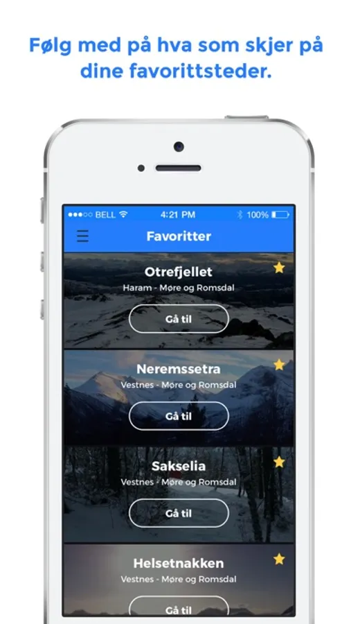 Gull: Opprette nye lokasjoner som du fra web administrerer videre. Du kan også opprette GPS-spor som andre kan følge. Dette blir "dine fjell" og "dine spor".