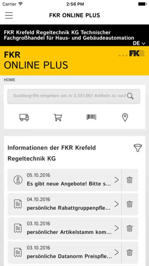 Einzige Voraussetzung, um uneingeschränkt den cleveren Service der App zu nutzen, ist ein gültiges FKR Online Plus-Login. Damit kann sich der Profi aus dem Fachhandwerk direkt anmelden und befindet sich im Handumdrehen im mobilen Portal der FKR. Hier steht – klar strukturiert und im funktionalen Design – der komplette Service bequem zur Verfügung. Der Nutzer hat Zugriff auf ca. 8.000 Artikel, kann sich Ware zur Lieferung auf die Baustelle bestellen oder bei seinem FKR Haus in der Region abholen. Kostenlos und mit intuitiver Bedienung lassen sich die vielfältigen Services schnell und einfach nutzen – egal wo, egal wann.