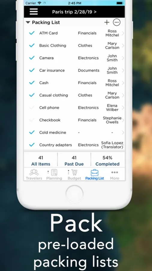 Pro Travel Planner also includes a collaborative Packing List so that you can visualize or assign Items to your travel companions.