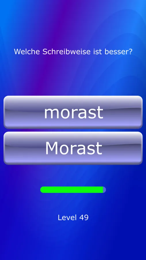 Das Kind arbeitet sich von ganz einfachen Wörtern zu Stufen vor, die ganz allmählich anspruchsvoller werden. Der Trainer hat 50 Levels, die zunehmend schwierig zu erklimmen sind. Wenn es die oberste Stufe erreicht, ist das Kind wahrscheinlich bereit, erste Versuche mit einem der Fortgeschrittenen-Trainer zu unternehmen, etwa mit GROSS- UND KLEINSCHREIBUNG: SUBSTANTIVE.