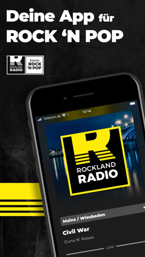 Nutze unsere neue App, um Rockland Radio auch unabhängig von Deinem Aufenthaltsort und der UKW-Versorgung in bester Soundqualität zu hören: direkt mit Deinem Smartphone oder per Streaming unterwegs im Auto, zu Hause auf Deiner Bluetooth-Box oder entspannt im Urlaub. Rockland Radio – bester ROCK ‘N POP: immer und überall.