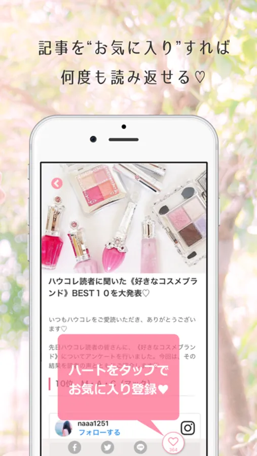 「後でしっかり読みたい!」という記事は、ハートをタップするだけでカンタンお気に入り登録。