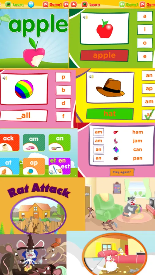 This is only the free version, which is meant to give you a taste of what is in the full app. In the full app, they will learn to blend and read words from the word families at, an, am, ap, ack, en, et & est. The app introduces key beginning consonant sounds which are also important in learning to read words and sentences. This is the first step in learning to blend and read words and sentences. There are decodable video stories which are meant to help learners see the use of these word families in sentences while inexplicitly introducing a few high frequency sight words. The videos and games are part of our Kindergarten Level 1 phonics program on http://www.kizphonics.com/phonics-program/kindergarten-level-1/