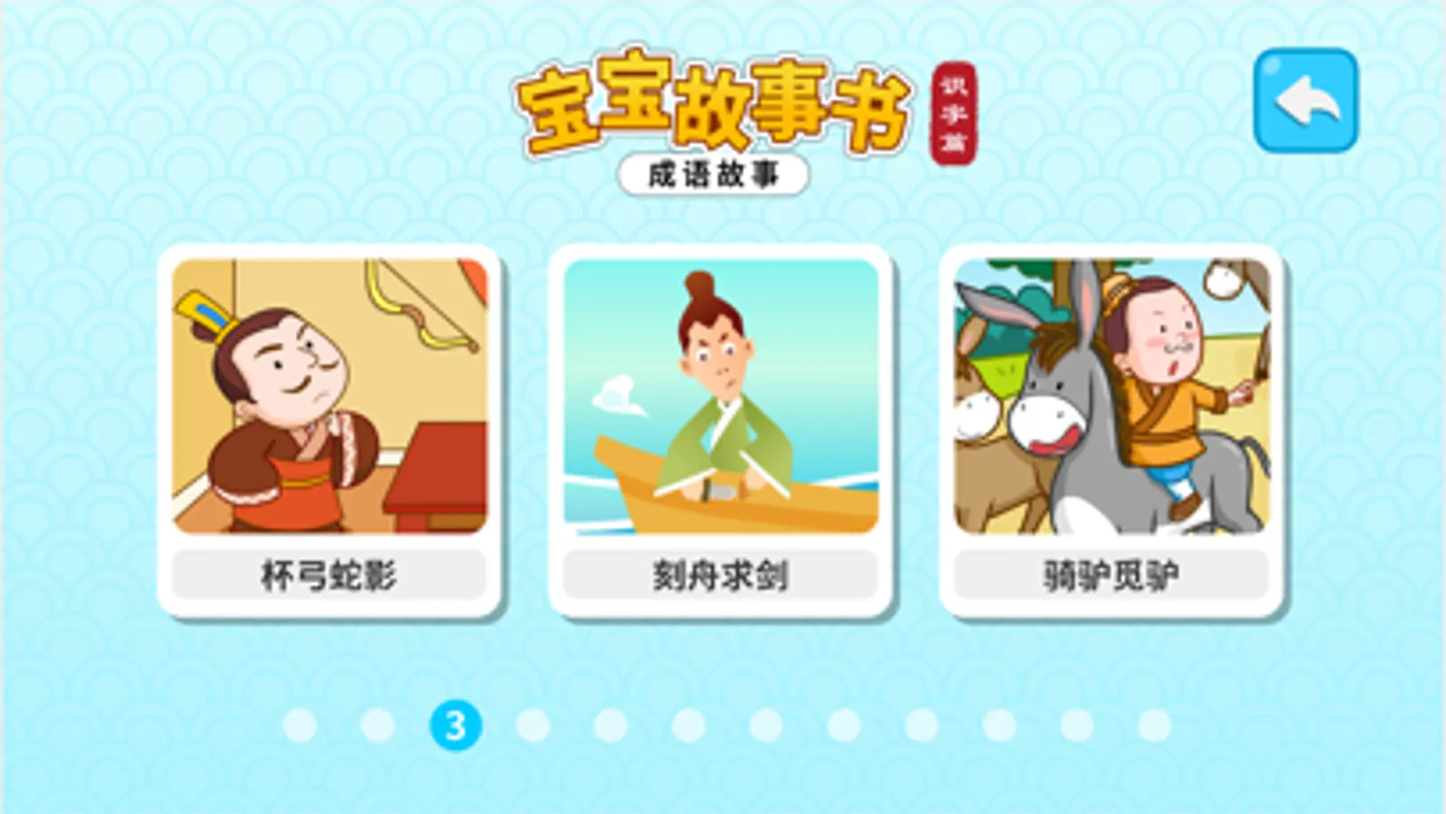 惊弓之鸟 画蛇添足 狐假虎威 郑人买履 拔苗助长 对牛弹琴 杯弓蛇影 刻舟求剑 骑驴觅驴 鹬蚌相争 雪中送炭 盲人摸象 画龙点睛 亡羊补牢 滥竽充数 凿壁偷光 塞翁失马 自相矛盾 黔驴技穷 愚公移山 纸上谈兵 磨杵成针 掩耳盗铃 杯水车薪 道听途说 一举两得 守株待兔 此地无银三百两 井底之蛙 杀鸡儆猴 半途而废 杀鸡取卵 南辕北辙 杞人忧天 熟能生巧 朝三暮四(后续持续更新)