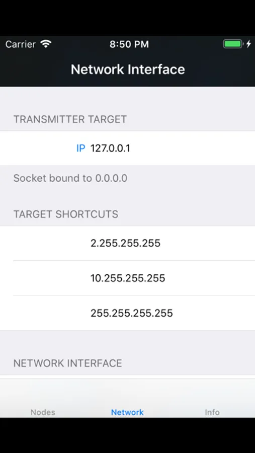 If you select a sending interface in the Network Tab the port will be reopened and bound to that interface. Like this you control which interface (GSM, Wlan) is used. On selection the appropiate broadcast ip for that interface is set as target.