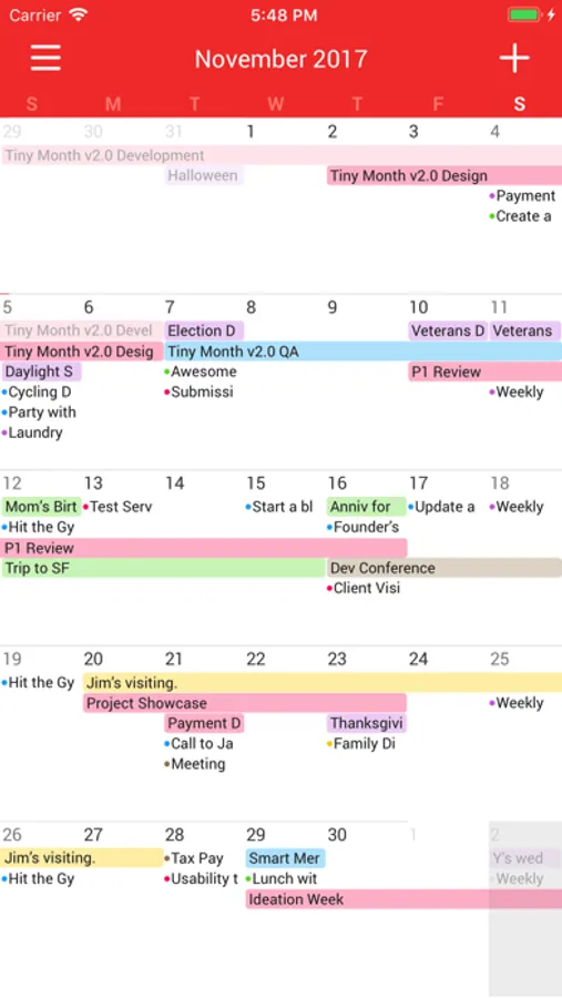- Tiny Month gives you colorful agenda title on your month view. Each day expands when you touch. This simple and intuitive interface makes reading event a breeze.