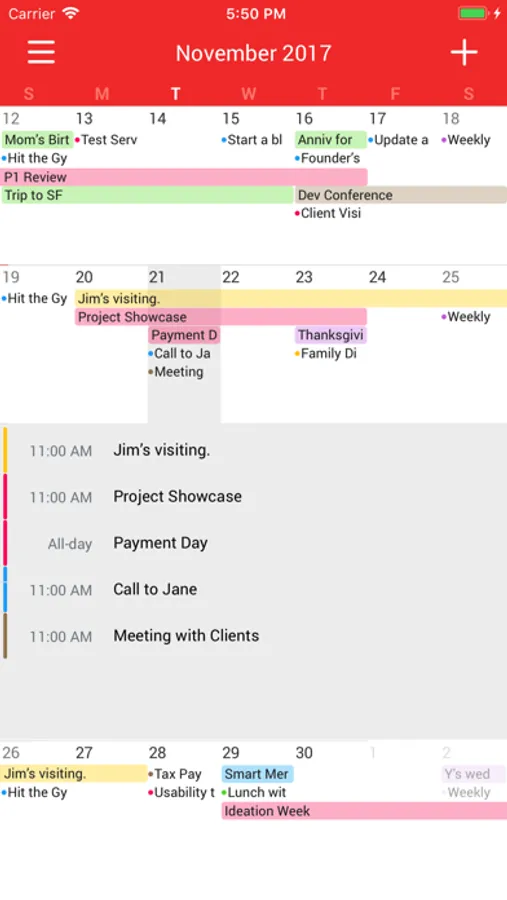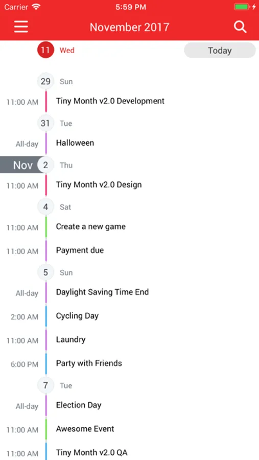 - Two things are different from normal list view. First, it gives you Month Separator that makes it easy to read events in the same month. Second, it has Day Indicator that makes it easy to see how far in the future it is as you scroll.