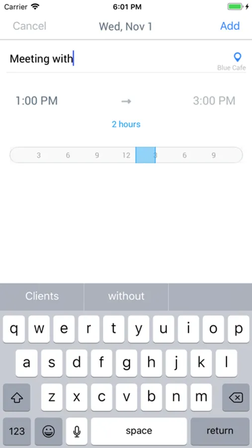 - You can add an event in a single touch by simply sliding your finger to set a time for events.