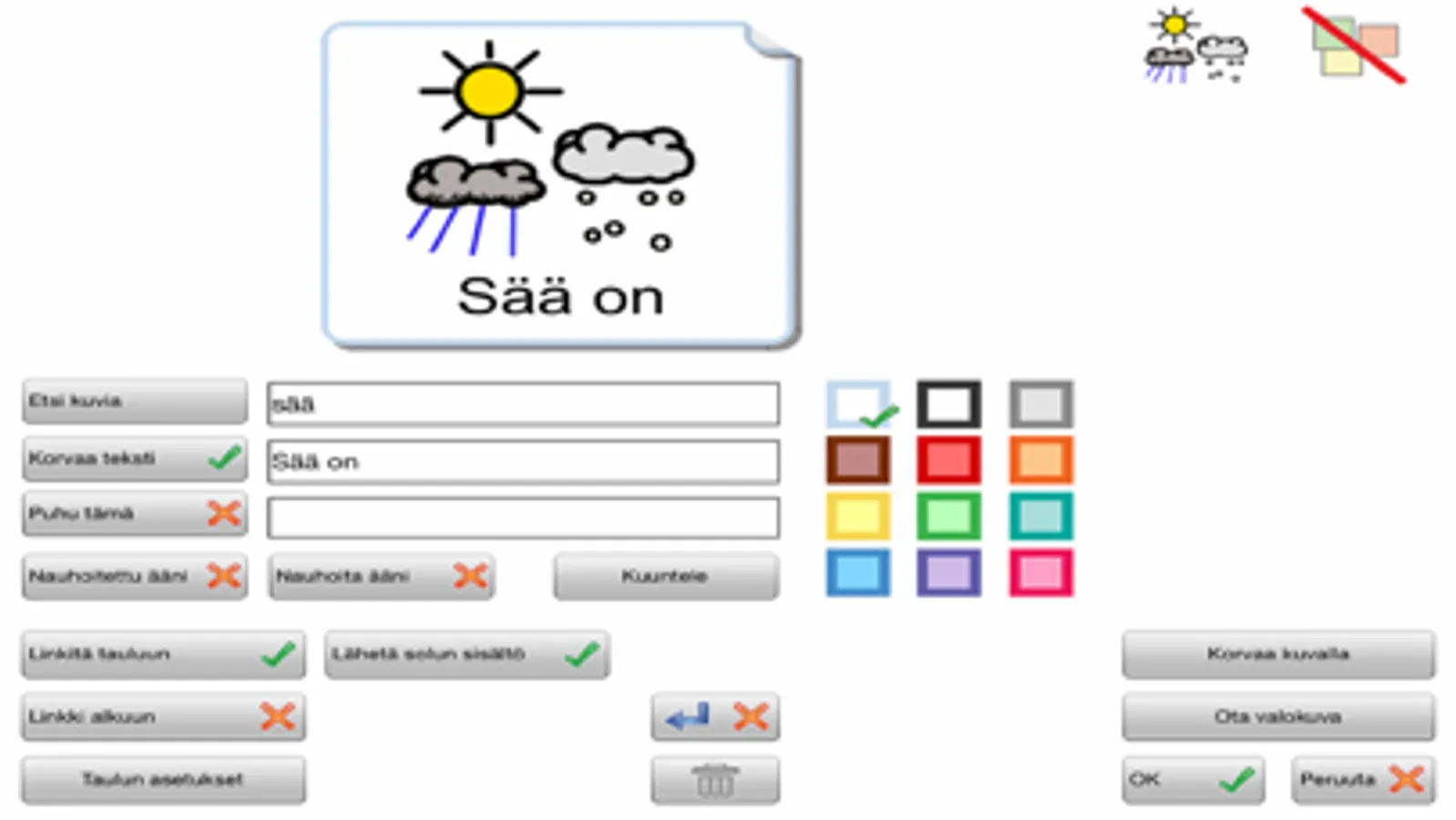 Widgit Go – sovelluksessa voit luoda ja muokata kommunikaatiotauluja, jotka sopivat erilaisille käyttäjille kielen kehityksen ja kommunikaation tueksi. Widgit Go:ssa voit myös kirjoittaa yksinkertaisia, kuvitettuja tiedostoja kuvataulujen avulla. Sovellus sisältää valmiita esimerkkitaulustoja, ja lisäksi voit helposti luoda omia kommunikaatiotauluja.