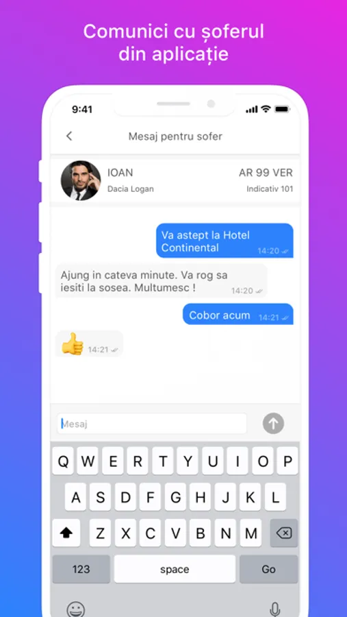 Aplicația iți găsește un șofer în câteva secunde, îl urmărești pe harta cum se apropie și îi trimiți indicații prin chat, să ajungă mai repede la tine dacă iți schimbi punctul de ridicare.