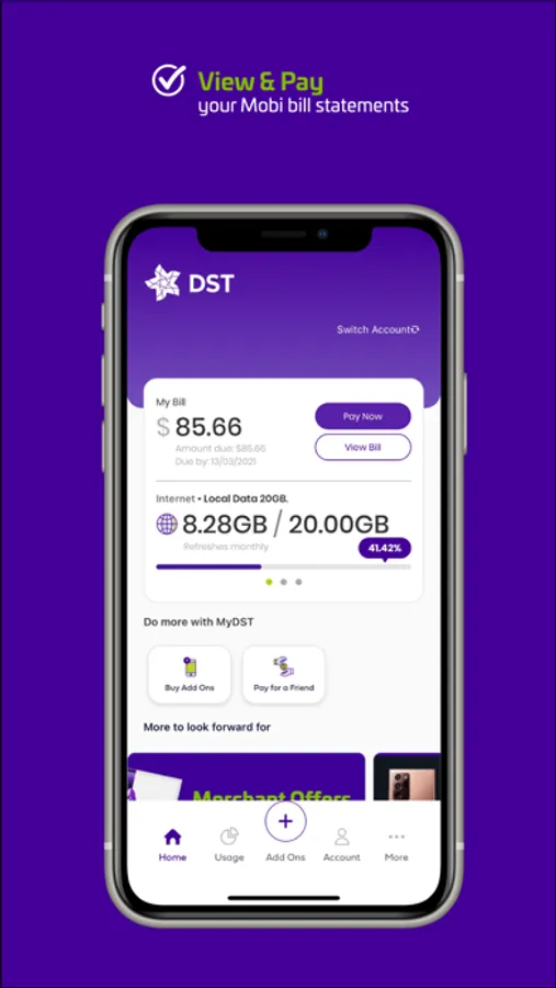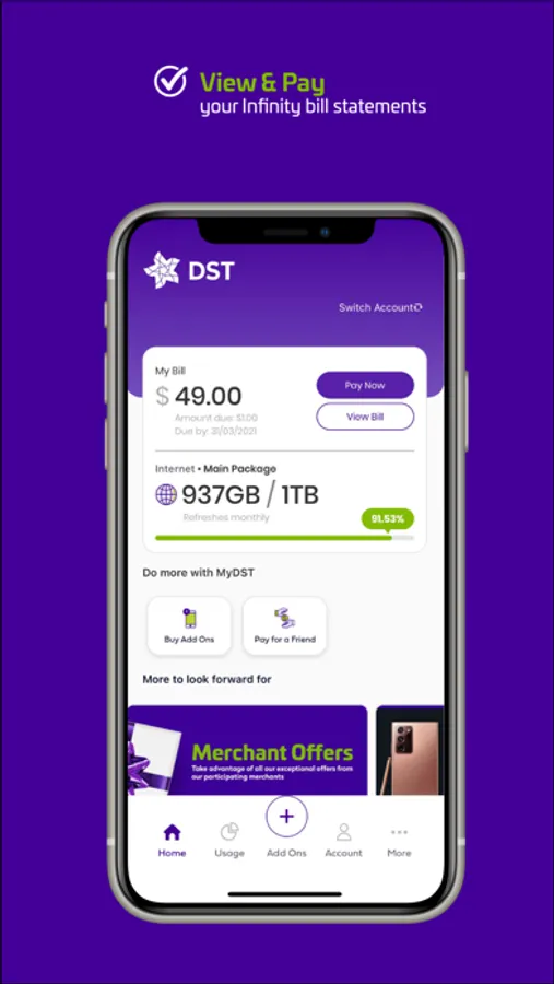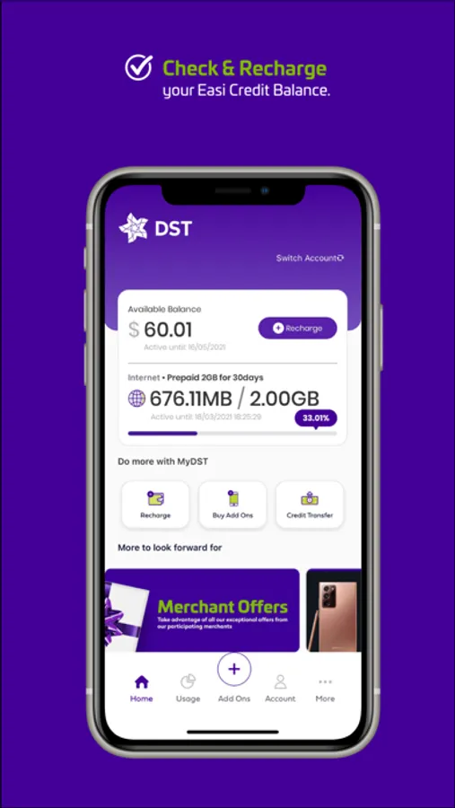 The MyDST app is a convenient and smarter way for you to manage all your DST accounts for Easi, Mobi, Freedom and Infinity. Providing an experience for you to have everything within the reach of your fingertips.