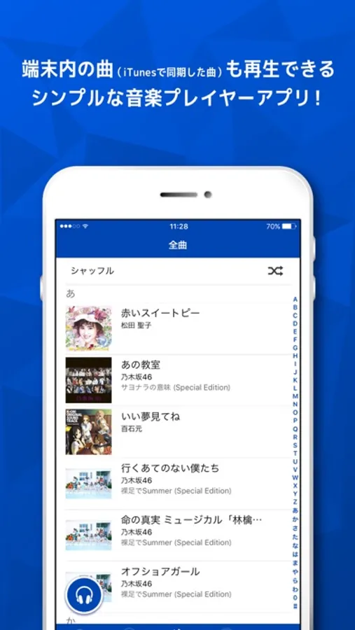 ・端末内の曲(iTunesで同期した曲)も再生できます。