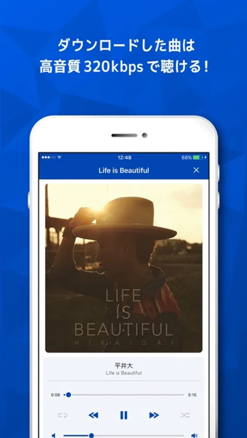 ・ダウンロードした曲は、高音質 320kbps で聴くことができます。