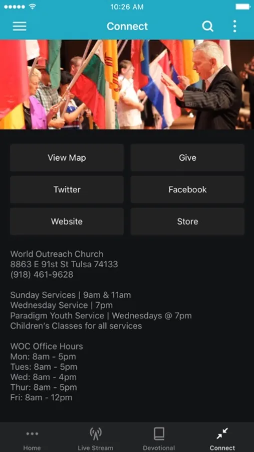 The World Outreach Church Tulsa app was developed with the Subsplash App Platform.