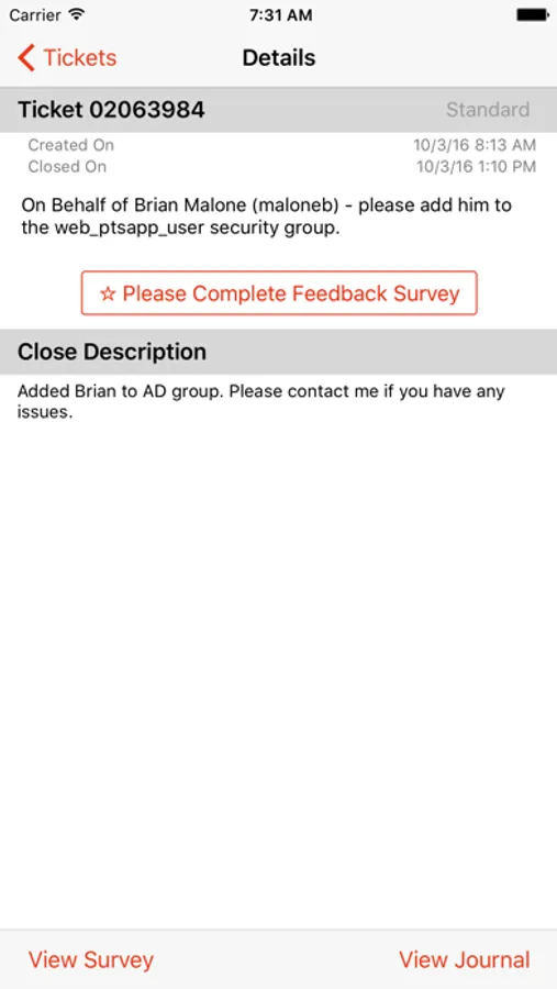 The Engage Service Desk App allows customers to check the status of their help/ticket requests 24 hours a day, 7 days a week.