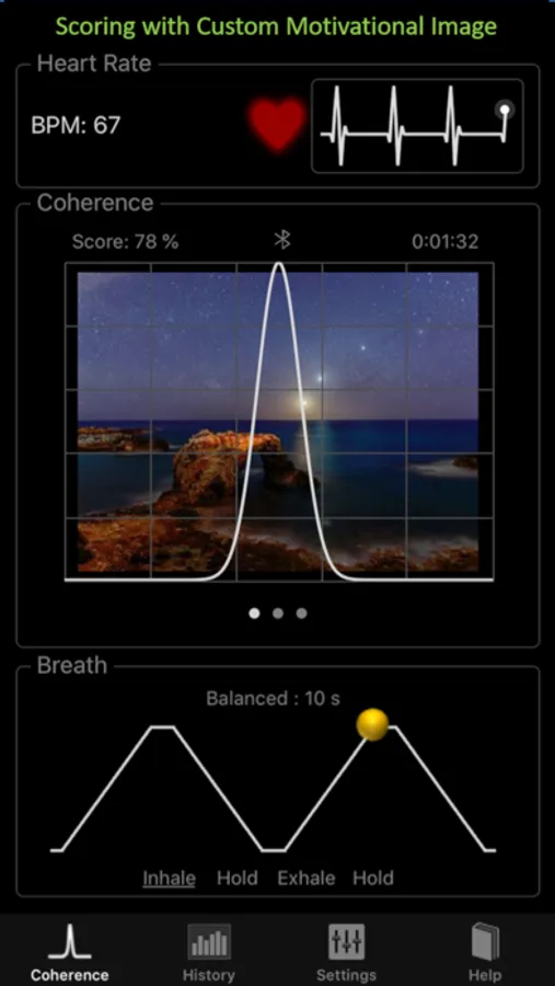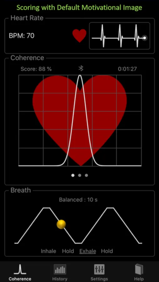 HeartRate+ Coherence PRO is the first application which includes a breathing guide and measure how well you are doing the breathing exercise via monitoring your heart rate and showing the level of cardiorespiratory coherence that you have reached.