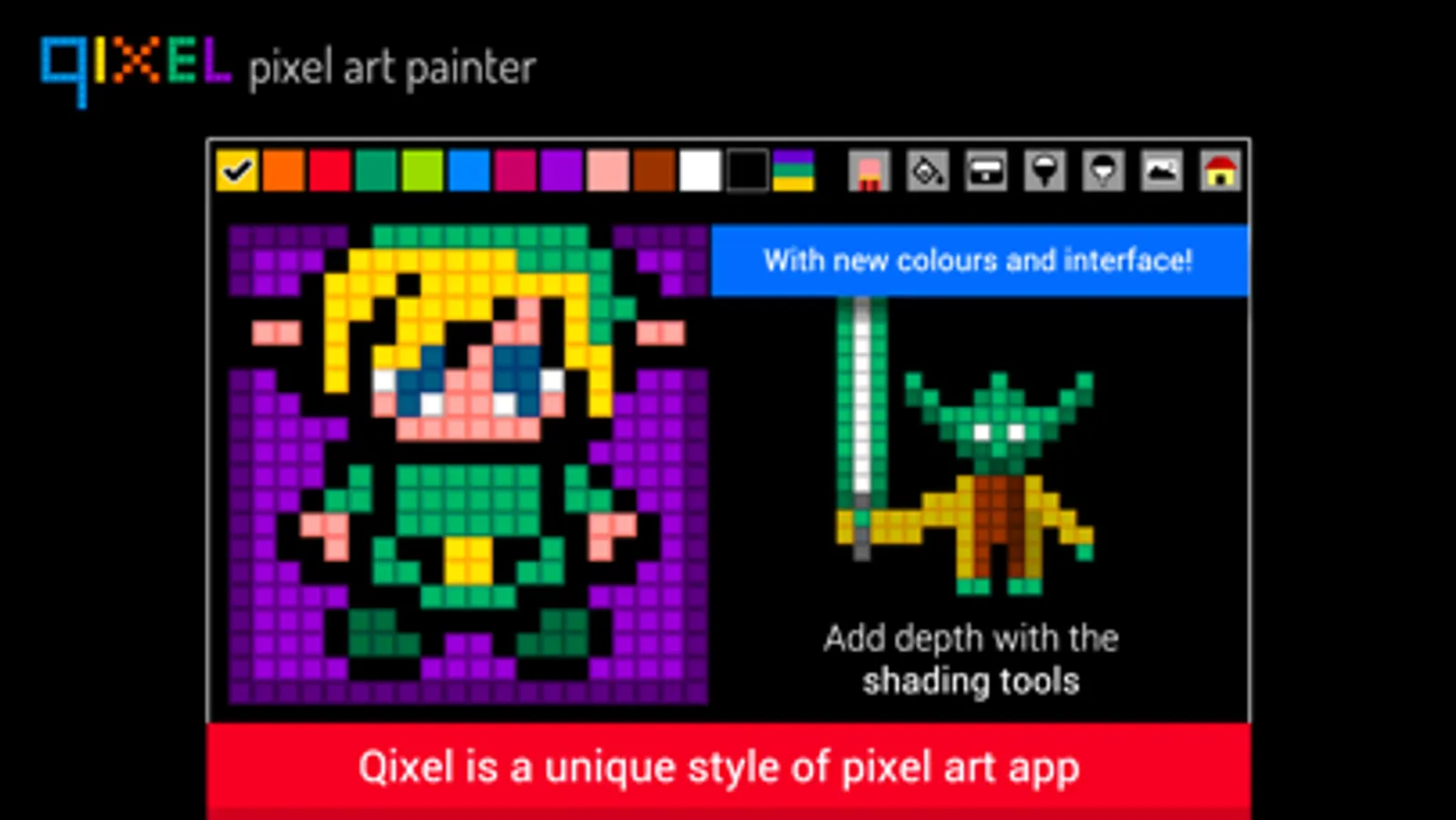 Qixel HD is an original and creative drawing app that makes it super-easy for pixel-lovers, designers and retro gamers to make unique 'qixel art' then export your designs to your iPad and iPhone.