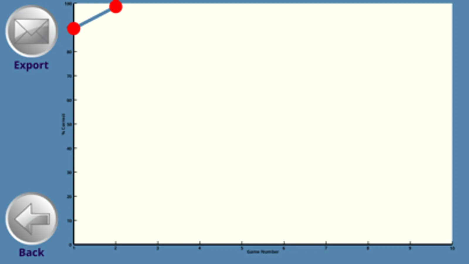 * Track data and statistics - At the end of the game, a graph of the child's data is presented. Touch the graph to enlarge it, and then touch each data point to gather information about the child's performance.