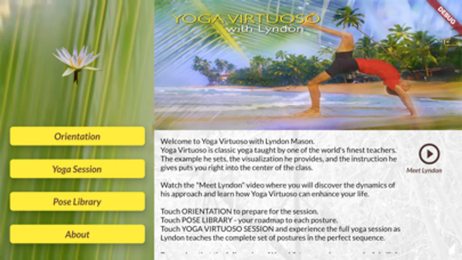 You’re afloat in a vast ocean. You drift up to a lush tropical island where you are welcomed by a yoga master. He offers to teach you an incredible yoga “sequence” that is the key to learning yoga and uncovering your true yoga potential. Now imagine Yoga Virtuoso, the yoga app with world renowned instructor Lyndon Mason who will help you to ‘Discover the Yoga Virtuoso in You!’