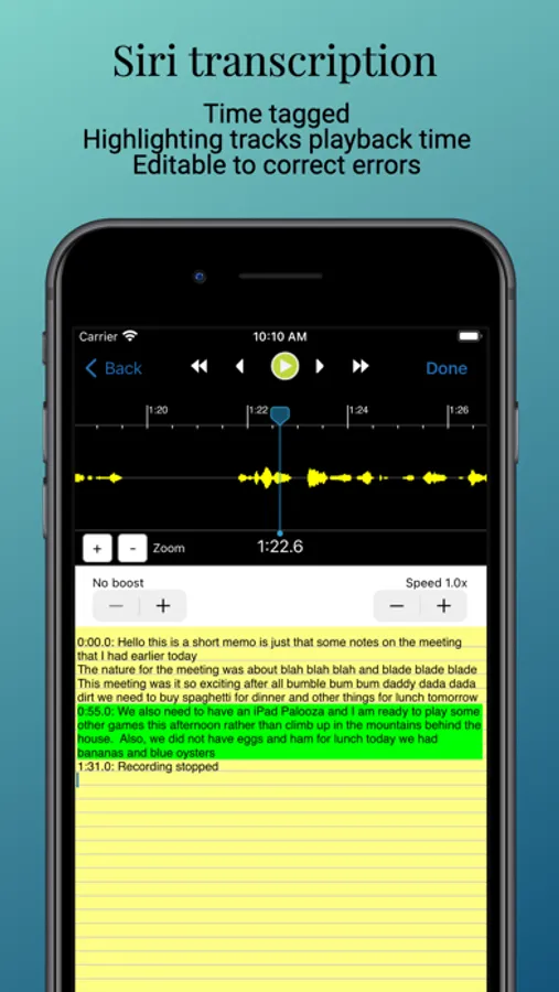 Smart Recorder is a full featured recorder and transcriber offering many features beyond what is available in the built in voice memos app. The Smart Recorder family of products has over 1,000,000 device installs. It has been actively marketed and updated for seven years. Use it to record meetings, interview, lectures, classes, todo lists, shopping lists or even your kids voices.
