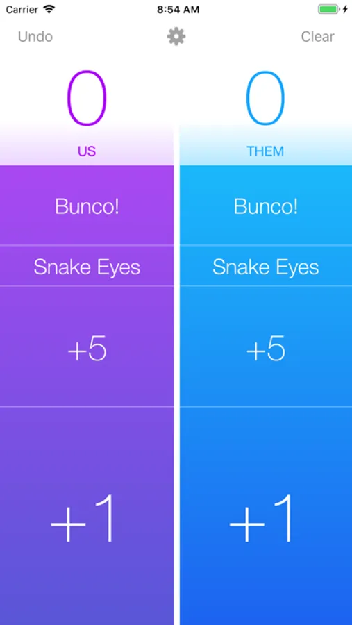 Throw out that paper and pencil because Bunco Calc makes it super easy to keep score! Tap on the extra large buttons for each roll and watch the total add up. Keep track of your own team as well as the team across the table from you.