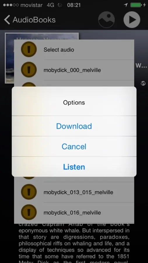 This application provides a repository with an index of free audio books. This index only contain the titles and the thumbnails. If you want to listen an audio book you will will have to download the different chapters that an audio book is composed of.