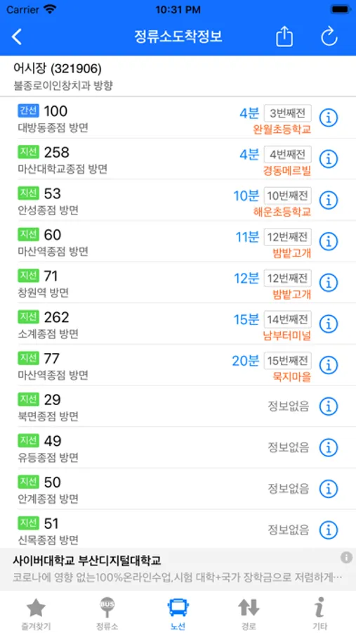 실시간도착정보는 창원시버스정보시스템에서 제공됩니다.