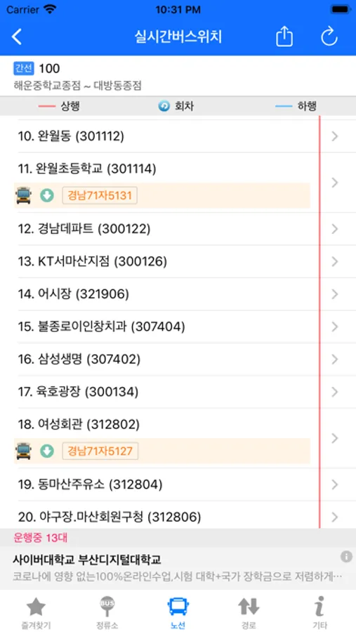 - 버스 노선 제공 및 버스 현재위치 제공.